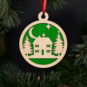 Cozy Winter Cottage with Moon Ornament – Laser Cut Christmas File